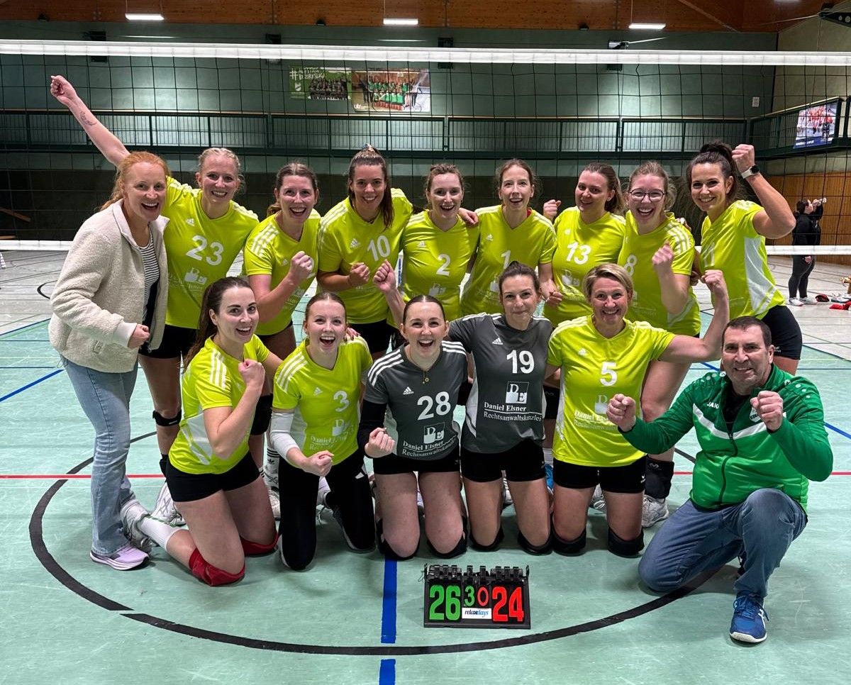 Die 1. Damen hatten am Sonntag zum Abschluss des Wochenendes die SG Recklinghausen zu Gast. Es sollte endlich was werden mit den ersten drei Punkten. Und Olfen war in der gut besuchten Ballsporthalle richtig gut drauf. Der genesene Trainer Dietmar Köhler vertraute auf seine altbewährten Stammkräfte und diese lieferten ab. Nach einer starken Aufgabenserie von Mona Brüggemann konnte Olfen sich im ersten Satz mit 16:9 absetzen, das 25:19 war danach nur noch Formsache. Der 2.te war länger ausgeglichen, am Ende 25:21 für Olfen. Jetzt hieß es wach bleiben, um nicht in die alte Olfener Krise zu verfallen. Recklinghausen ging in Führung, aber Olfen blieb dran, am Satzende ein Krimi mit dem verdienten Sieg für die Dietmars Mädels – 3 Punkte und das ohne Satzverlust (3:0; 25:19, 25:21; 26:24). Endlich, ist der Knoten geplatzt. Jetzt bitte mehr davon!