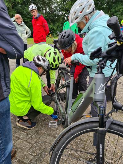 Am zweiten Tag ging es mit unserer 20-köpfigen Radlertruppe zum Wochenmarkt in Enschede. Längs der Dinkel ging es bis zum Zentrum von Gronau mit dem Rock- und Pop-Museum. Das Gebäude ganz wie Udo Lindenberg sehr auffällig und der Platz davor sehr schön mit Blumen bepflanzt. Leider ist zur Zeit die stylistische Fußgängerbrücke gesperrt, so dass wir eine Umleitung fahren mussten. Kurz hinter Gronau die holländische Grenze, ganz deutlich zu erkennen an dem hervorragend verlegten Betonplattenweg durch die Dinkelauen. Warum können die Holländer so schöne Radwege bauen...? Über viele Pättken und Nebenwegen ging es bis zur Lonneker Mühle, eine große Windmühle mit Verkauf der lokalen Produkte. In Enschede ging es recht problemlos über Fahrradstraßen und -wege bis zum Fahrradparkhaus direkt am Wochenmarkt. Übrigens ist das Fahrradparkhaus kostenlos, bewacht, verfügt über Toiletten und Lademöglichkeiten, einfach genial. Es war auch reichlich Platz für unsere Fahrräder, kein Wunder bei 1000 Stellplätzen. Der Wochenmarkt ist immer ein besonderes Erlebnis, besonders die Fischstände mit der reichhaltigen Vielfalt. Natürlich haben wir uns dort mit Kibbelingen oder leckerem Backfisch gestärkt. Der Rückweg auch wieder über viele Pättken durchs Naturschutzgebiet Amstfeen. Empfangen wurden wir nach 60 Kilometern in Epe durch den Spielmannszug zum Schützenfest.