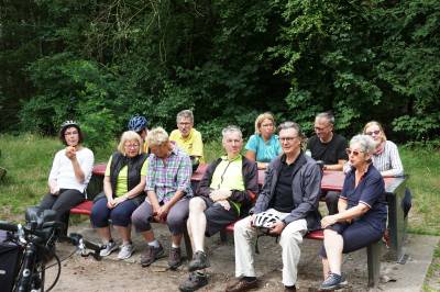 Das kleine Dorf Ohne hat einen schönen Kern und eine Holzbrücke führt über die Vechte. Über die Bahntrasse Rheine - Ochtrup ging es bis zum Offlumer See mit einer schönen Aussichtplattform aus umgebauten Silos. Die Mittagspause verbrachten wir in Bad Bentheim mit seiner schönen Burg. Leider war der Ausblick auf den unterhalb liegenden Schlosspark zur Zeit wegen einer Baustelle an der Burg nicht zugänglich.