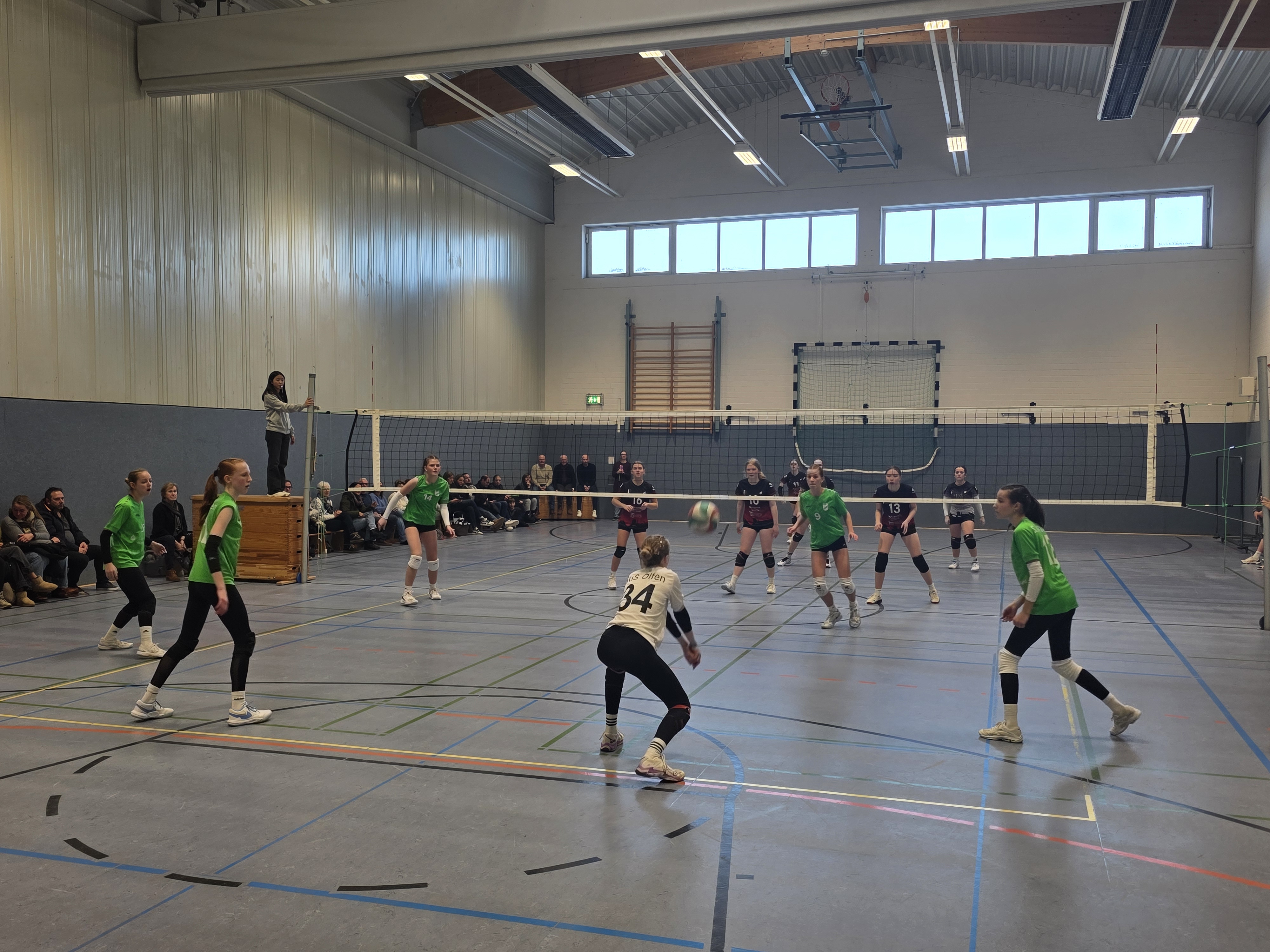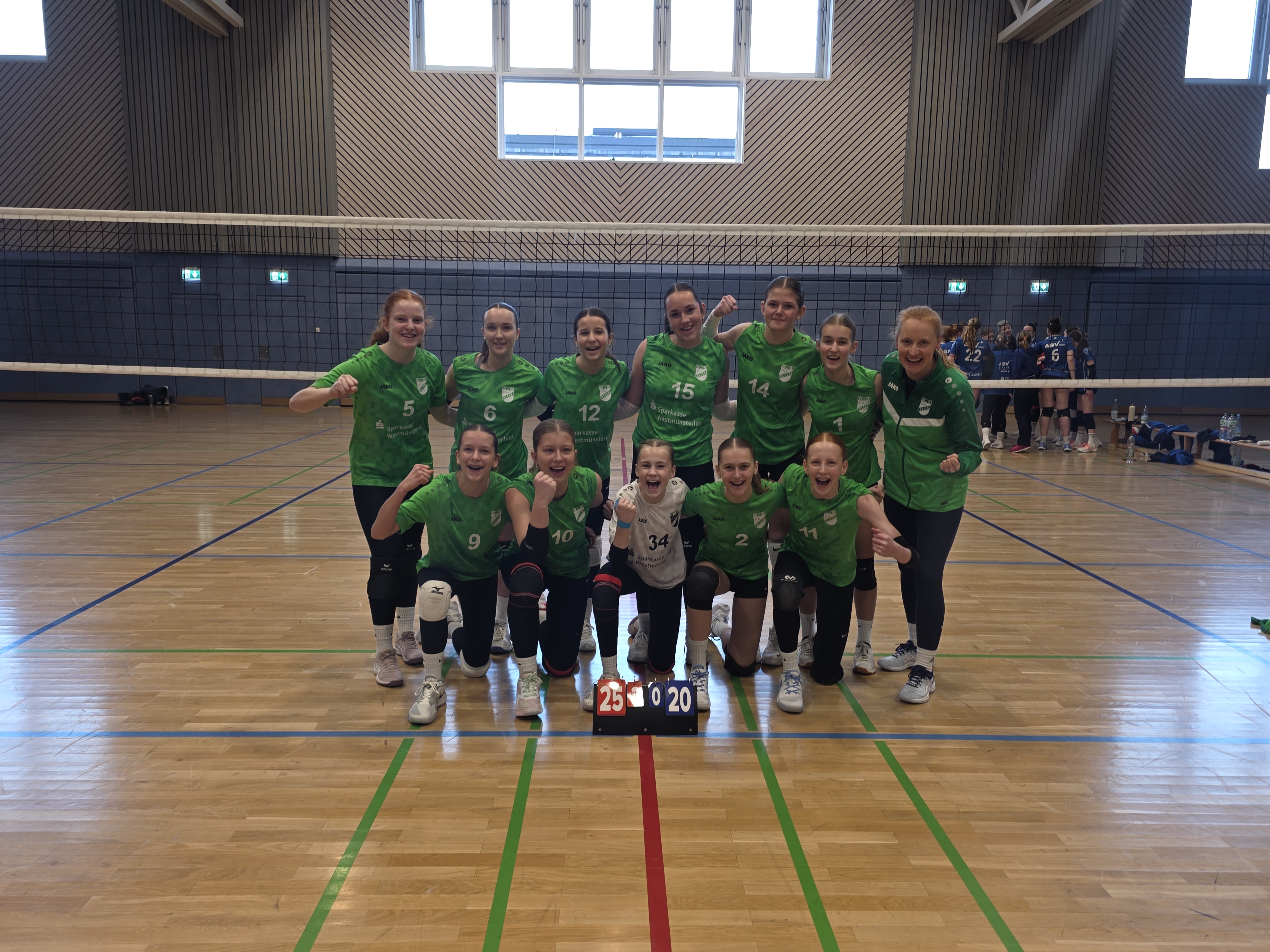 Am Sonntag war die Olfener Volleyballabteilung dann Gastgeber der Quali A zur Westdeutschen Meisterschaft in der weiblichen U16. Gäste waren der FCJ Köln, der Stolberger TG und der Lüner SV. Olfen kam gut rein in das toll organisierte Turnier. Dank druckvoller Aufgaben von Zuspielerin Frida und einem Klasse Zusammenspiel mit Leona über Außen und Marie S. über die Mitte, wurde Punkt um Punkt gesammelt. Letztlich ließ man dem ersten Gegner Köln nur wenige Chancen - 25:19, 25:18.