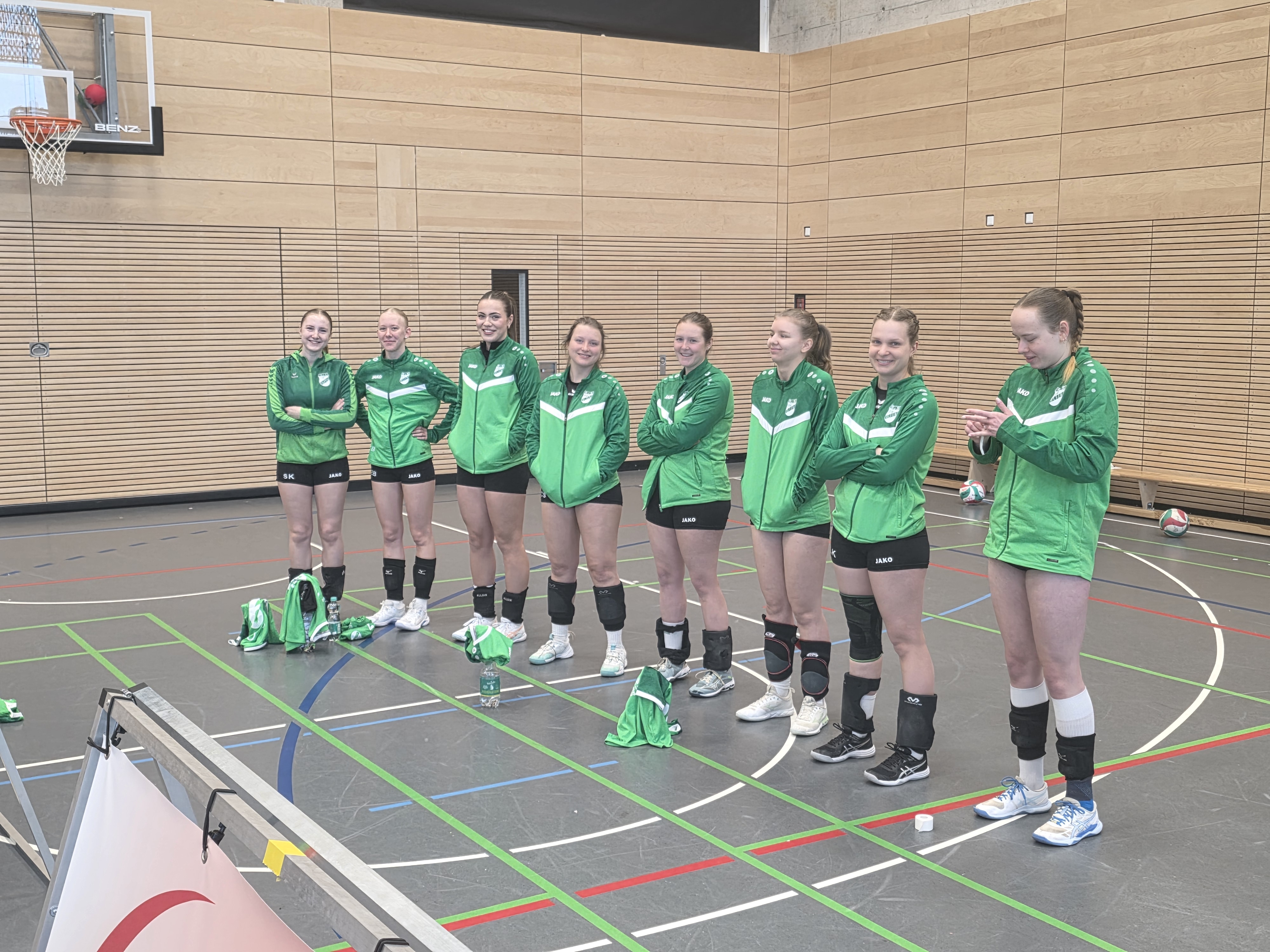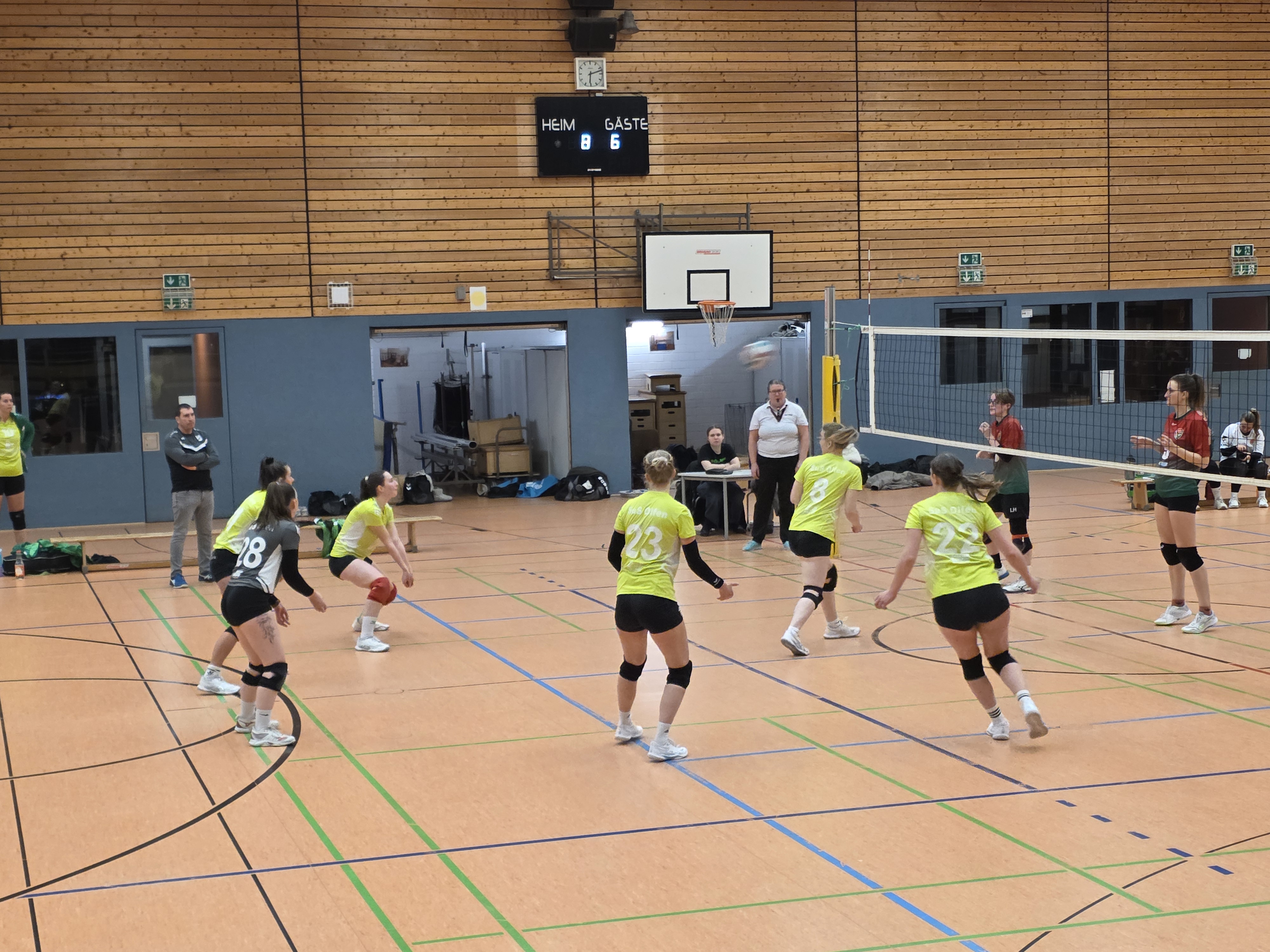 Die erste Mannschaft trat am vergangenen Wochenende auswärts beim Abstiegskandidaten der SG Recklinghausen an. Der Einsatz von Zuspielerin Antonia und Diagonal Jana war lange fraglich, hatten beide doch mit einer leichten Gehirnerschütterung nach ihrem Zusammenprall in der Vorwoche zu tun. Glücklicherweise wurden beide rechtzeitig fit. Das Spiel gegen die SG Recklinghausen lässt sich mit dem Stichwort „Arbeitssieg“ am besten beschreiben. 25:19, 25:18 und 25:11 und somit 3:0 sind deutliche Satzgewinne, die Punkte wurden jedoch unspektakulär und mit viel Kampf eingefahren, weil Recklinghausen nie aufsteckte. Toll, dass Pauline aus der Zweiten zu ihrem ersten Einsatz kam und sofort mit einem Killblock den Weg zum Matchball bereitete. Jetzt geht es in den Endspurt der Saison und vielleicht kann man ja Lüdinghausen auf Platz 2 noch ein bisschen ärgern.