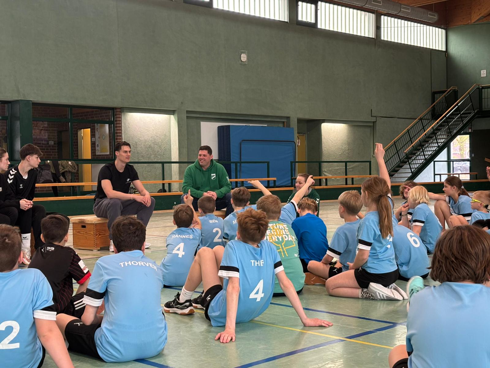 Nach dem Mittagessen nahm sich Miro viel Zeit für eine lockere Fragerunde, in der er offen, ehrlich und auf Augenhöhe alle Fragen der Kinder beantwortete. Ob Träume, Training, Nervosität vor großen Spielen oder sein Weg in den Profihandball, die Kinder hingen gespannt an seinen Lippen.